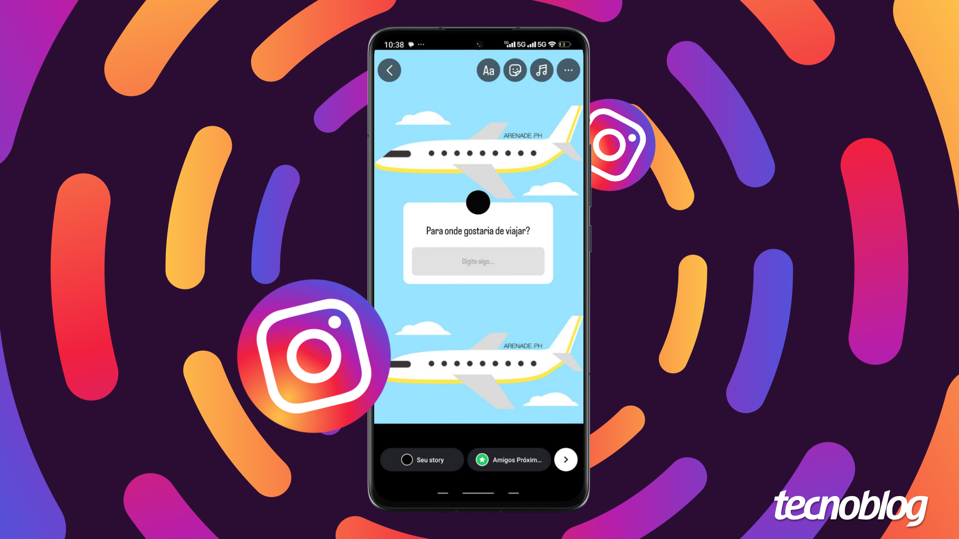 Toque no campo de texto da caixinha e crie a pergunta desejada. Também é possível tocar na paleta de cores para mudar a cor do quadro antes de pressionar o botão de “check” para abrir caixa de perguntas no Instagram. Por fim, posicione a caixa e toque em “Seu story” para fazer a publicação.