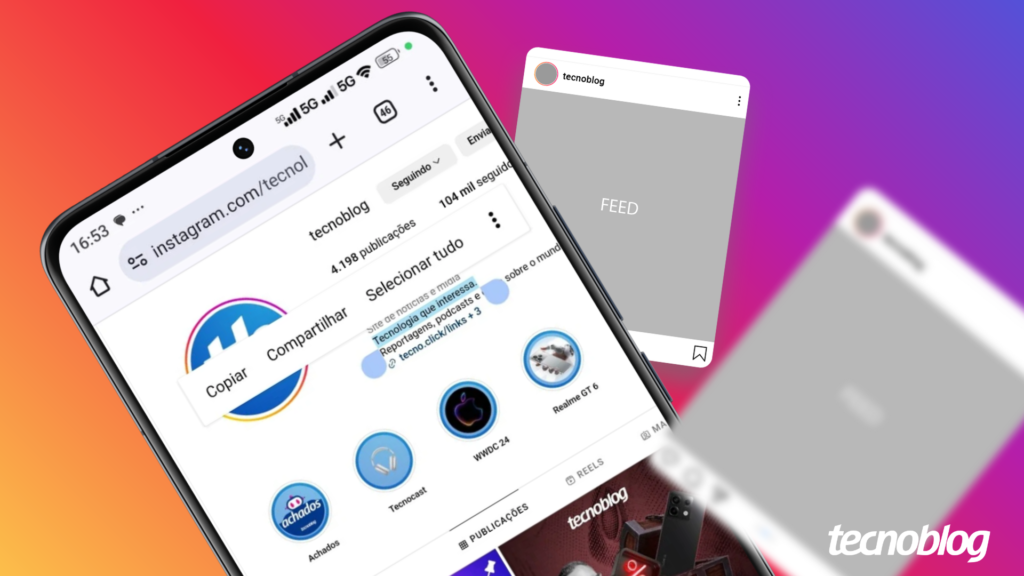 Para copiar texto do Instagram pelo celular é preciso abrir a página da rede social pelo navegador e selecionar o texto. O processo pode ser feito no iPhone ou em aparelhos Android.